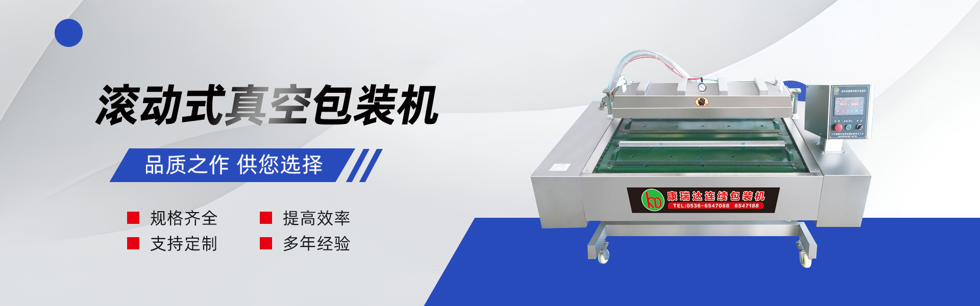 主要產(chǎn)品:康瑞達(dá)智能拉伸膜包裝機(jī)系列;康瑞達(dá)真空包裝機(jī)系列。 康瑞達(dá),讓客戶無限強(qiáng)大!康瑞達(dá)人堅(jiān)持有好人品才有好產(chǎn)品,強(qiáng)強(qiáng)聯(lián)手,激流勇進(jìn),不忘初心,砥礪前行,康瑞達(dá)繼續(xù)致力于打造—全球智能真空包裝機(jī)械客戶放心產(chǎn)品......